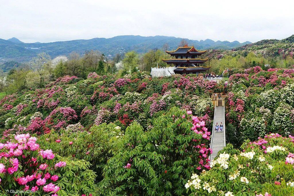百里杜鹃风景名胜区位于贵州省西北部,毕节地区中部。距贵阳155千米,326国道通过景区。景区以普底,金坡两乡为中心,以大面积原生杜鹃林为主要特色。因杜鹃林带绵延百里,故称“百里杜鹃”。普底景区是百里杜鹃的代表和精华。在名胜区内,还有岩溶、山泉、飞瀑及浓郁的彝族、苗族风情,与百里杜鹃漫山花树交相辉映,是迄今为止中国已查明的面积最大的原生杜鹃林,被誉为“世界上最大的天然花园”,有“世界级的国宝精品”之美称。